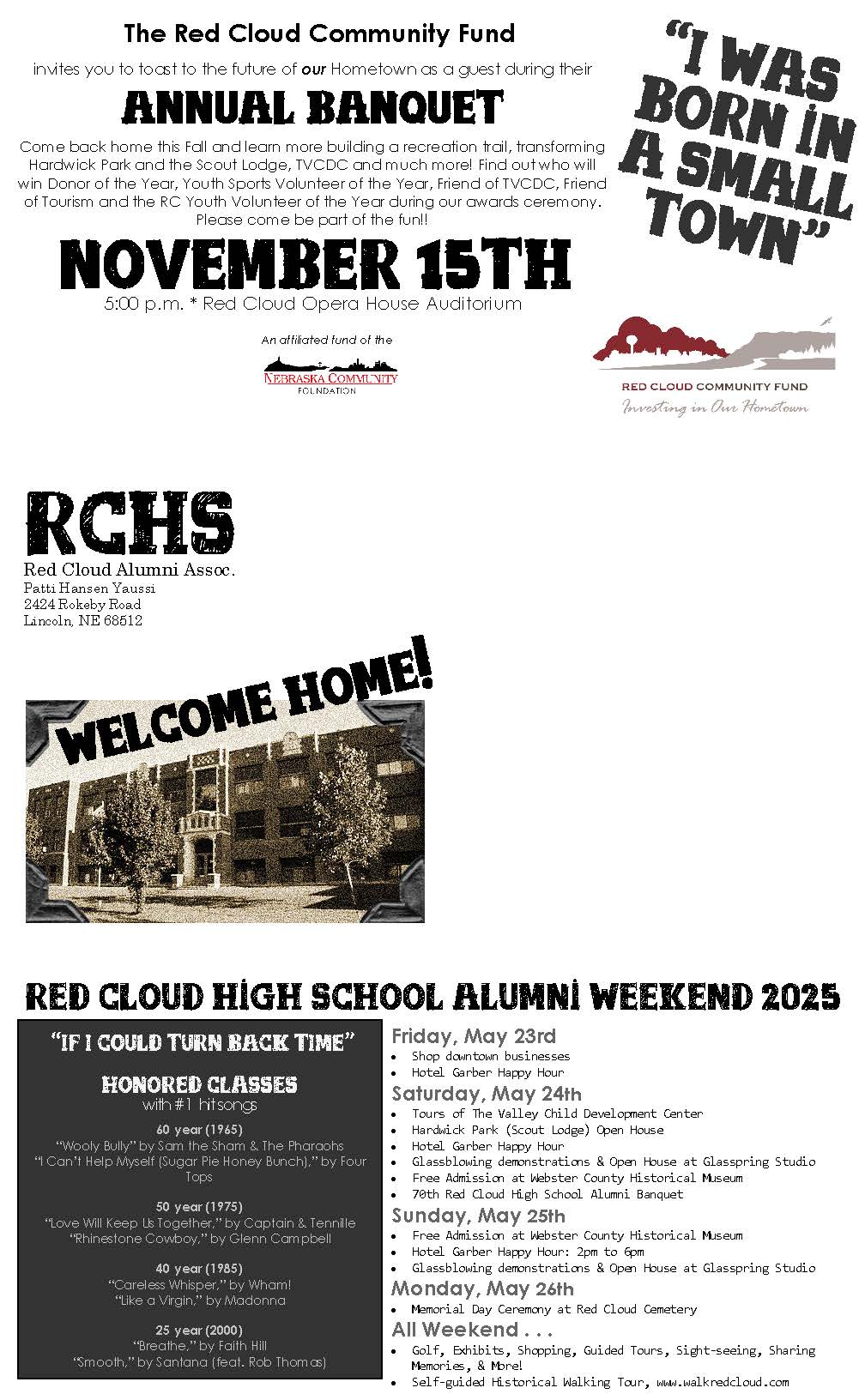 The Alumni Banquet will be May 24th. The weekend will begin with free events on Friday and conclude with a Memorial Day ceremony organized by the Donald G. Stratton American Legion Post #238